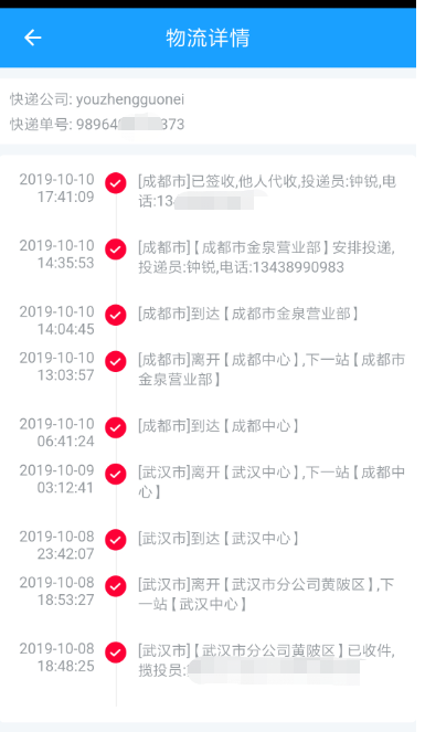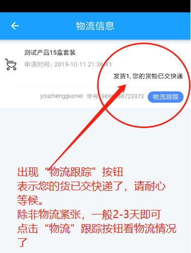 6.查看物流信息,如果物流已经取货,则会显示“物流跟踪”按钮。点击即可查询物流流向。